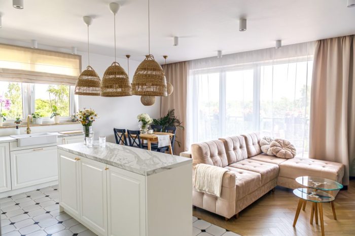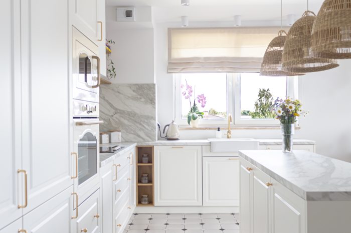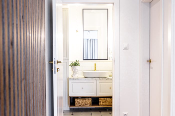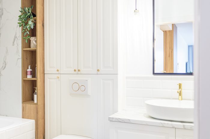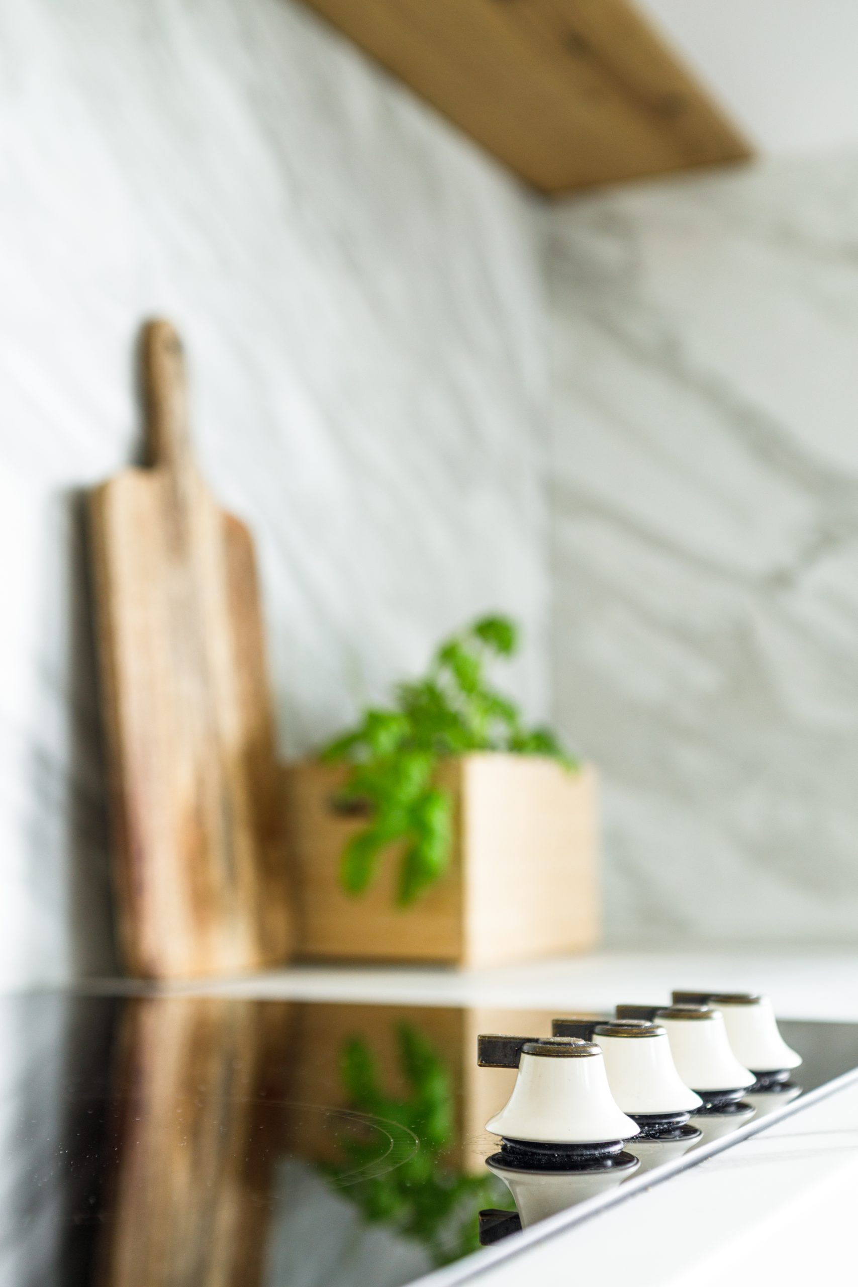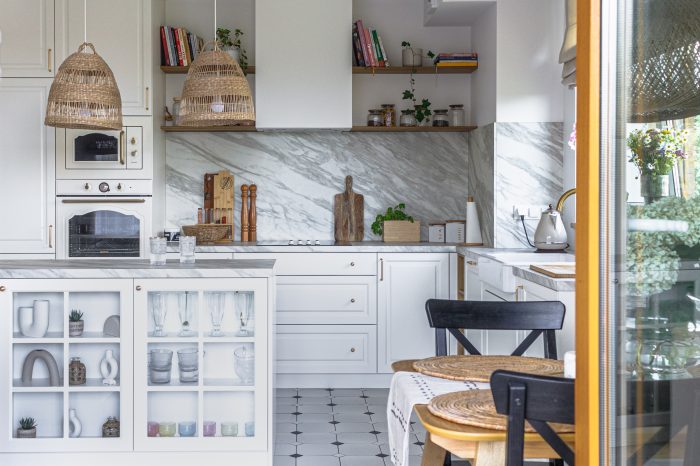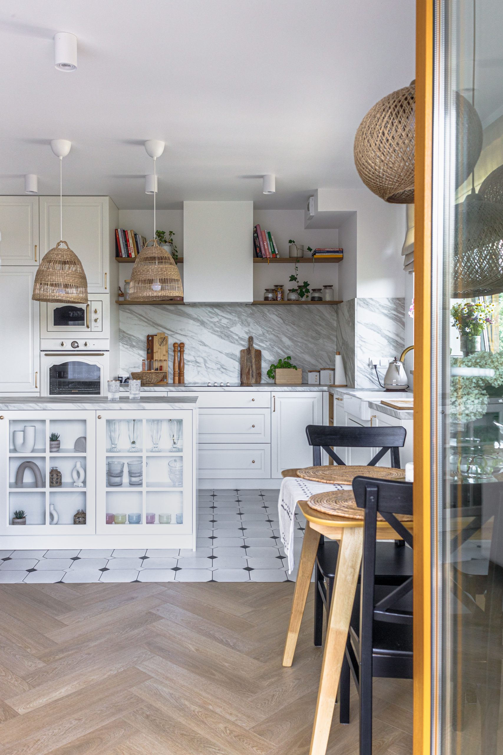 Projekt utrzymany w jasnej, harmonijnej tonacji łączy nowoczesną klasykę z naturalnym ciepłem drewna. Subtelne marmurowe akcenty i złote detale dodają elegancji, a przemyślana zabudowa i oświetlenie zapewniają funkcjonalność i spójność całej przestrzeni. To wnętrze pełne światła, spokoju i ponadczasowego stylu.